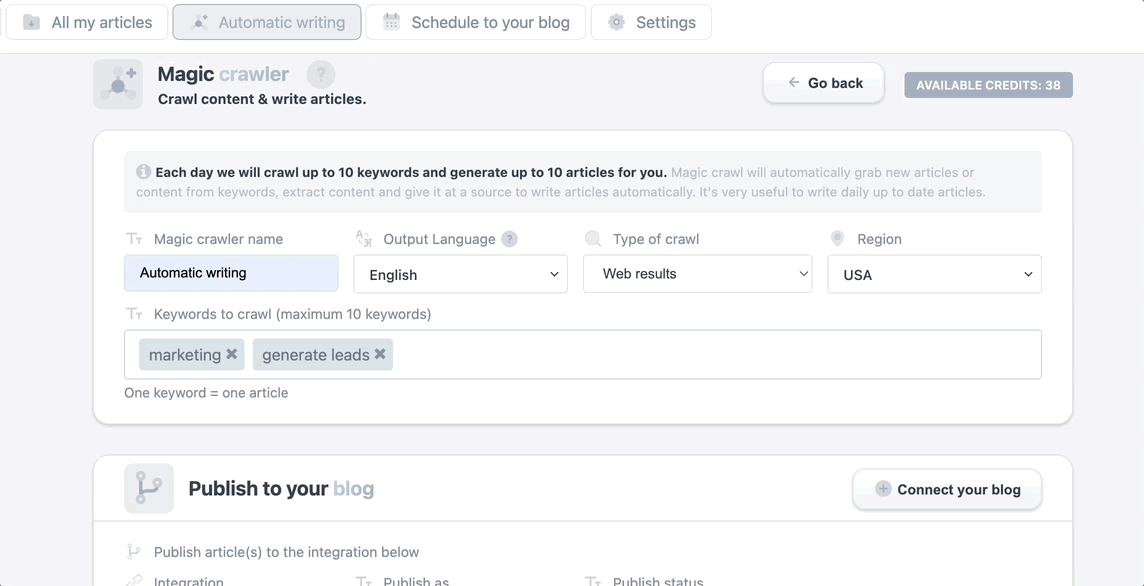 Générez plus de contenu de blog en moins de temps.- Produire plusieurs articles en masse